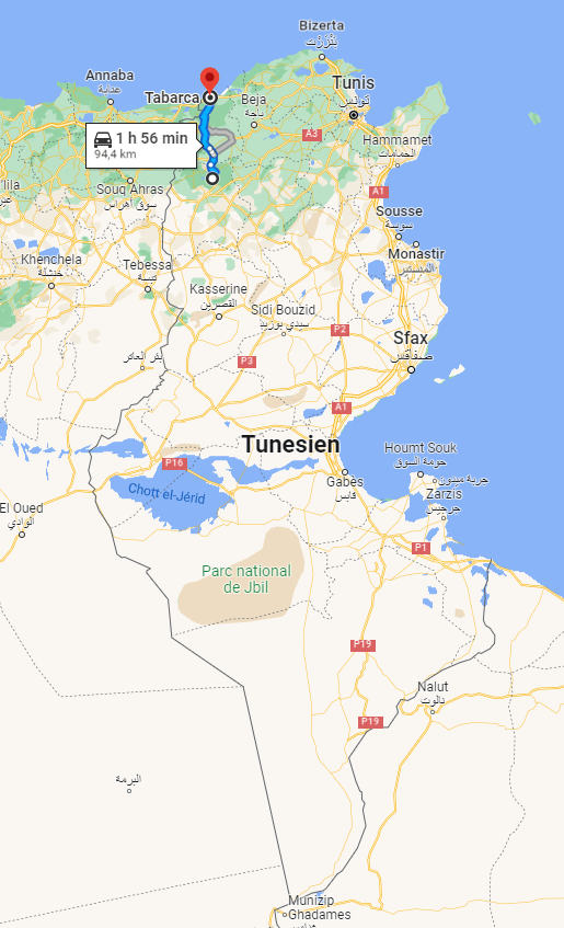 ✓ Möglichkeit zur Weiterfahrt zu den Nachbarstädten mit dem öffentlichen sicheren Verkehrsmittel (El Kef (31 Km), Jendouba (25 Km), Dougga (61 Km), Tabarka (92 Km), Tunis (176 Km davon 125 Km Autobahn).